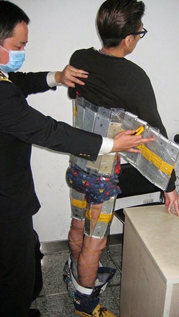 This hapless smuggler was caught by security after he tried to take 94 iPhones into China by strapping them to his body.Unsurprisingly, the hidden smartphones were picked up by a metal detector at Fution Port in China that connects Hong Kong with the rest of the country.